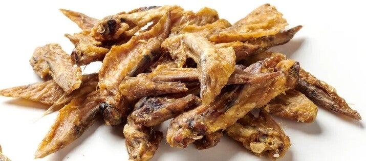 Ein kleiner knackiger, knuspriger Snack für Zwischendurch. Für kleine Hunde sowie für Welpen geeigent. Hähnchenflügel sind luftgetrocknet und naturbelassen. Durch die schonende Trocknung bleibt die weiche Konsistenz der Knochen erhalten, diese können somit nicht splittern. Das macht die Hähnchenflügel zu einem idealen Kauartikel für Welpen und Junghunde die langsam an das Kauen und an Kauartikel gewöhnt werden.